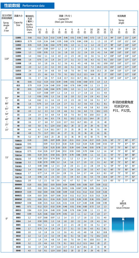 TP fan spray nozzle can provide high impact liquid column flow or fan spray. The spray angle is between 0° and 110°.